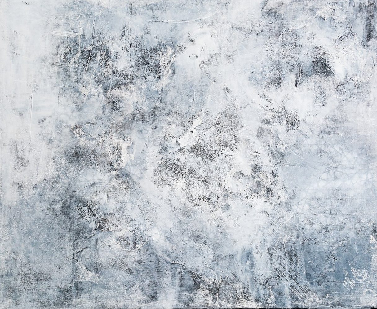Door het werken in lagen, ontstaan de grijs-blauwe tonen.