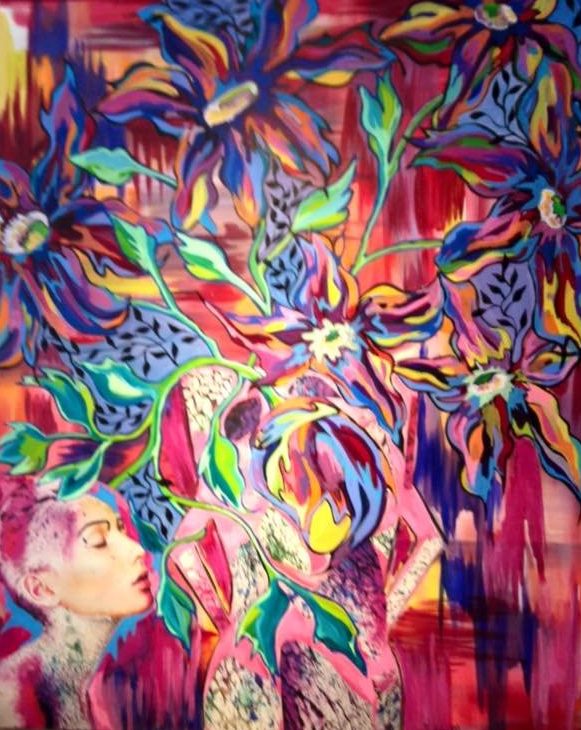 Een globale impressie van het schilderij "Flowers of sensitivity" 70x100cm.