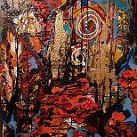 Een globale impressie van het schilderij "Love" 100x100cm.