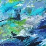 Een globale impressie van het schilderij "Connected" 80x80cm.