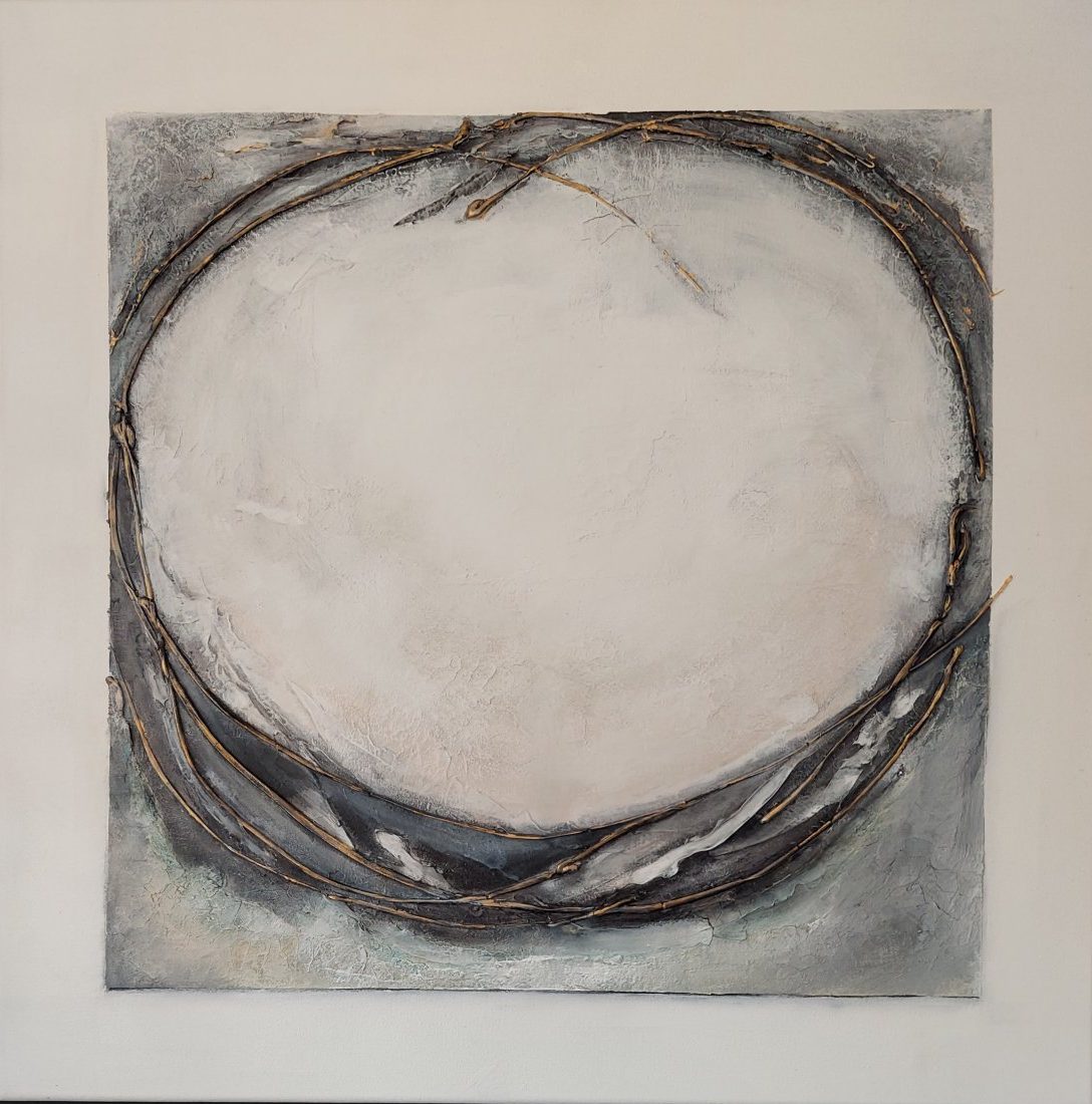 Structuren en lagen zorgvuldig aangebracht op doek.