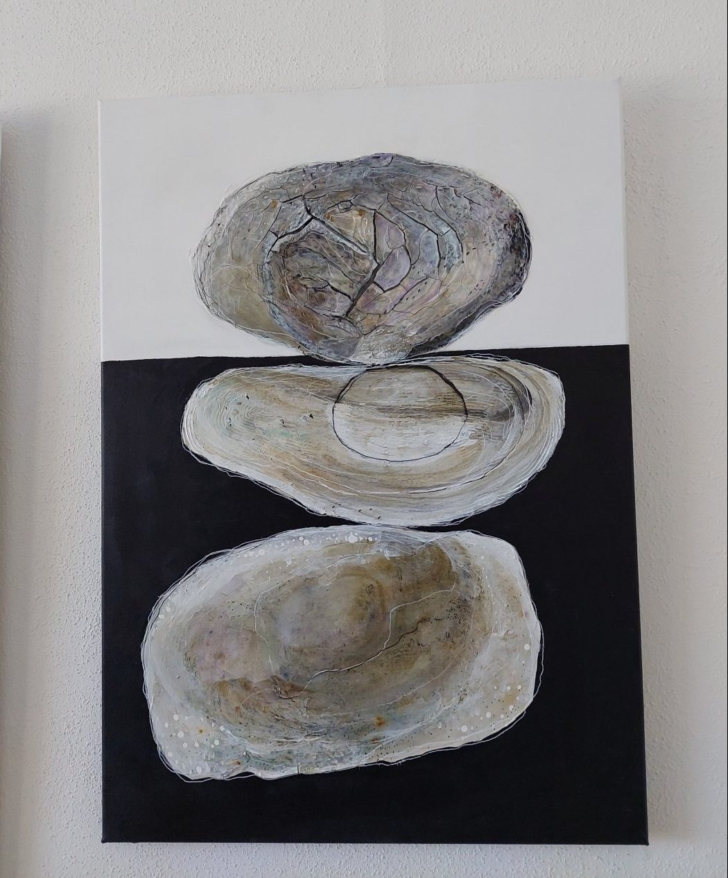 Met dit schilderij heb ik de vorm en de kleur van stenen en schelpen als inspiratie gebruikt. Met prachtige structuren heb ik dit schilderij met zorg en liefde in vele lagen opgebouwd.met acrylverf en acrylinkten is het ingekleurd. Prachtig in balans. Heel bijzonder voor een bijzondere plek.Heb jij die ? Dan is dit schilderij misschien voor jou.