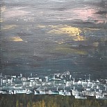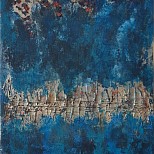 Een globale impressie van het schilderij "Fuego azul" 30x40cm.