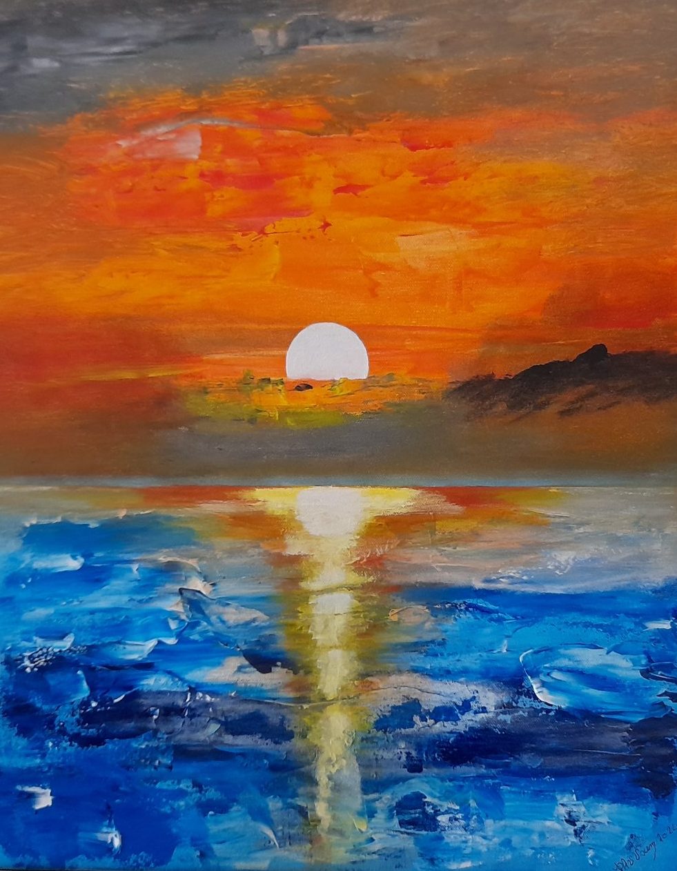 Een globale impressie van het schilderij "Zonsondergang" 50x60cm.