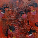 Een globale impressie van het schilderij "Red - Grey and White" 100x100cm.