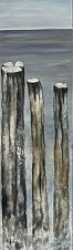 Een globale impressie van het schilderij "Strandpalen" 30x100cm.