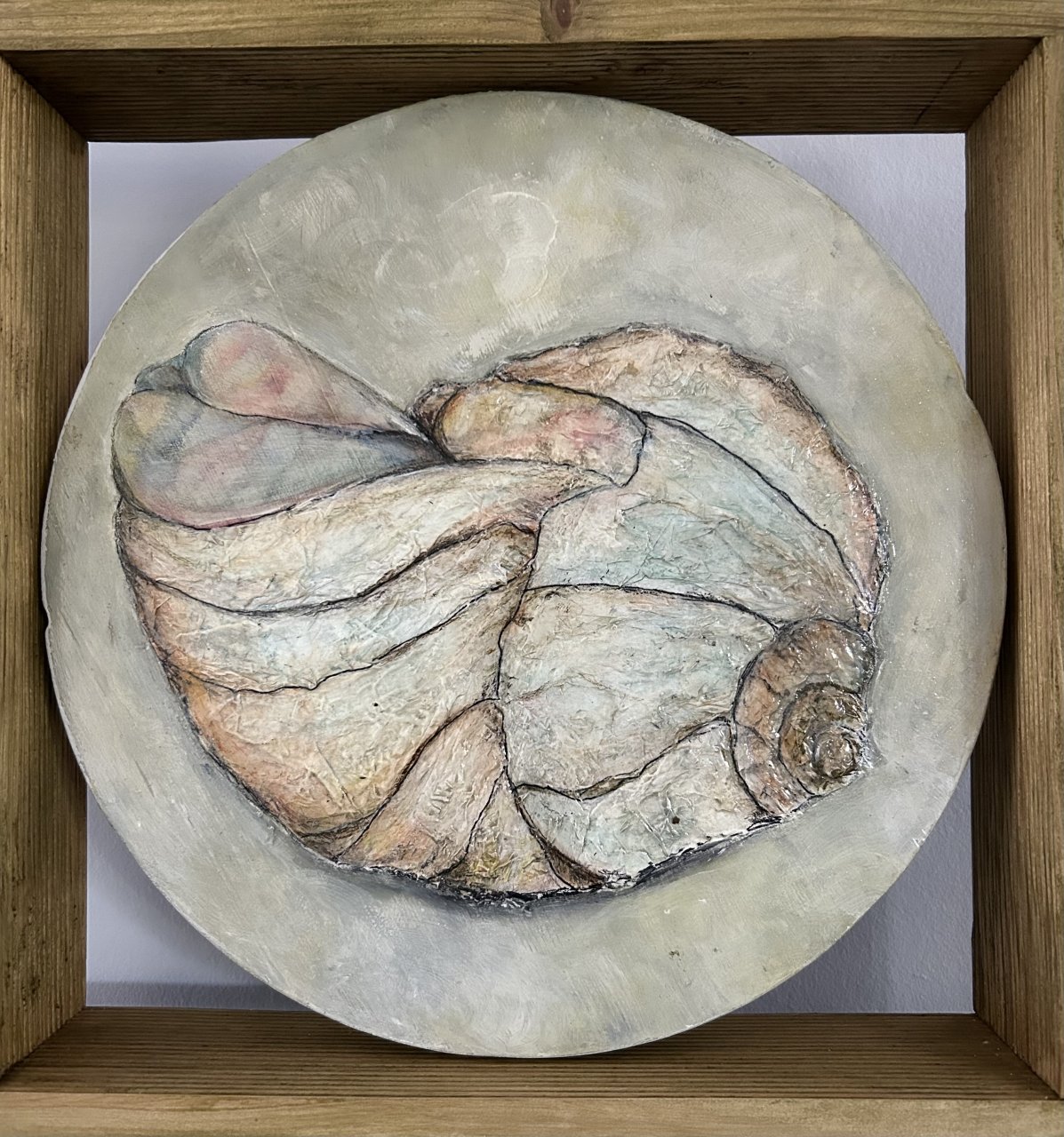 Een globale impressie van het schilderij "Ammoniet" 30x30cm.