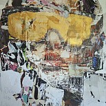 Kleurrijk, modern, abstract, mixed media schilderij, opgebouwd uit diverse lagen (dekkend en transparant) en met verschillende materialen, zoals papier hout en ijzer. Met doek op doek wat voor diepte in het werk zorgt.